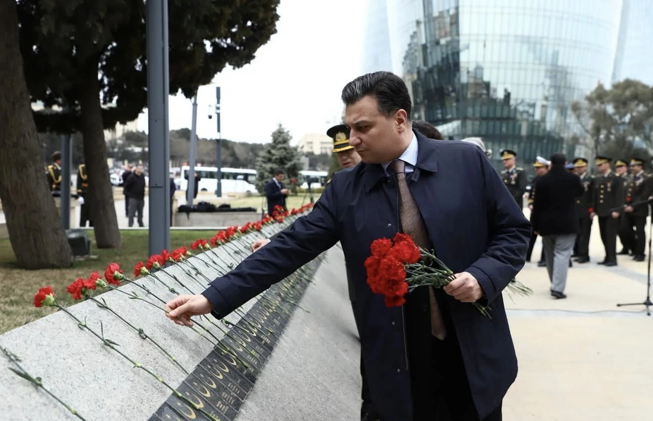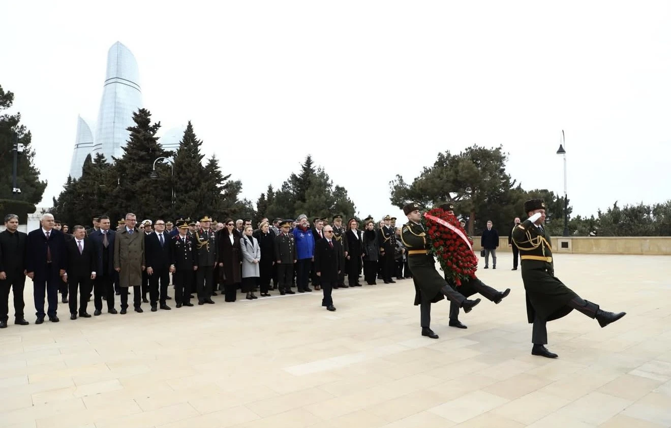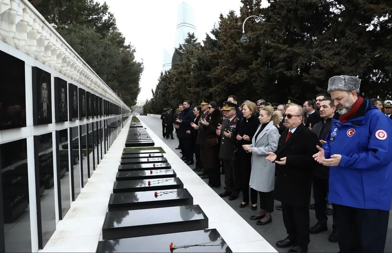 Türk Şəhidliyindəki xatirə abidəsinin qarşısına çiçək dəstələri qoyulduqdan sonra mərasim Şəhidlər Xiyabanını ziyarətlə başa çatıb.