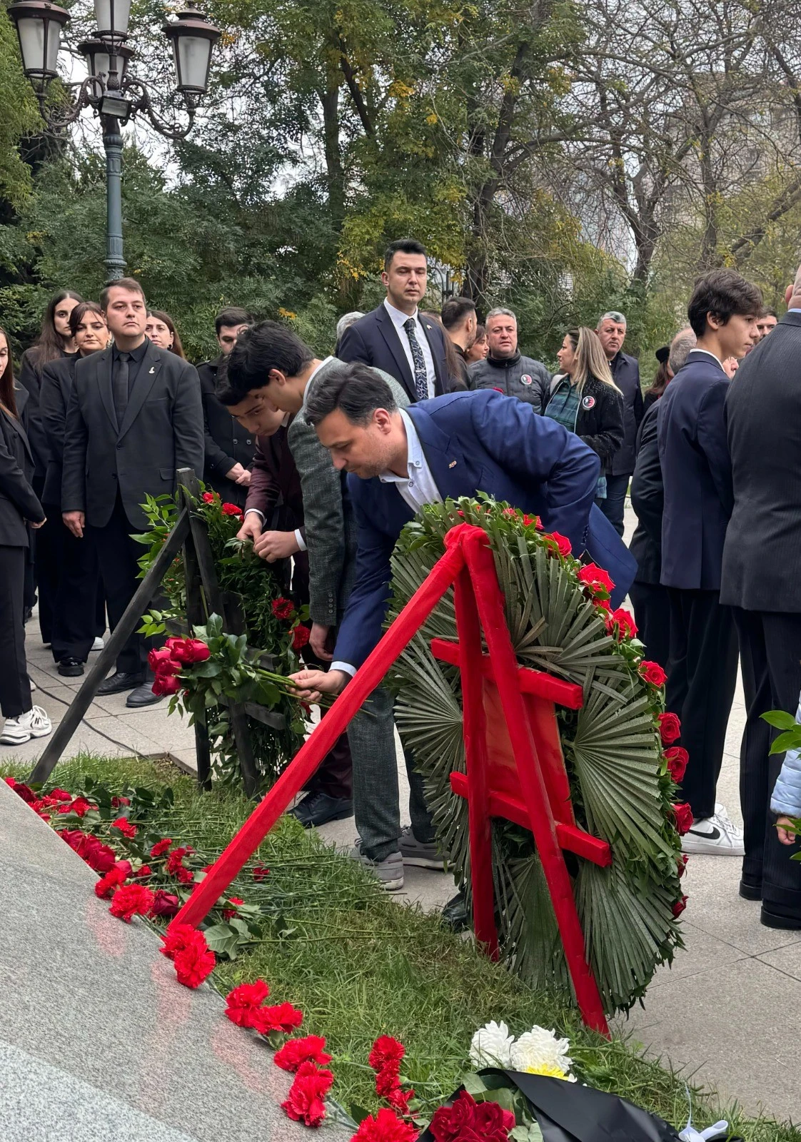 Daha sonra iştirakçılar Atatürkün abidəsinin qarşısına gül dəstələri qoyaraq, xatirəsini ehtiramla yad ediblər.